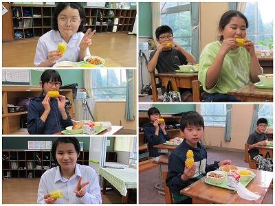 しかし、給食室の先生方の「銀鏡の子どもたちにも食べさせてあげたい」という心遣いにより、昨日、ついに本校の子どもたちも食べることができました。「甘い!」「おいしいです!」と思わず笑みがこぼれる子どもたちの姿に、ほっこり心温まる給食となりました。