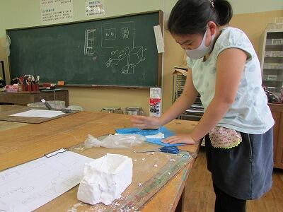 粘土を使って作品を作っています。 鬼の金棒や富士山、インコやトラックなど、それぞれが作りたいものの図面を描き、粘土で形を作っていきます。 細かいパーツなどは難しそうでしたが、捏ねたり整えたりしながら、丁寧に作っていました。