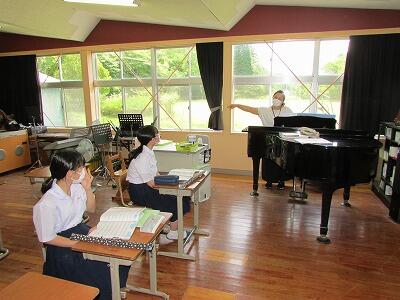 中学校1年生は音楽の授業で、合唱と篠笛をしました。