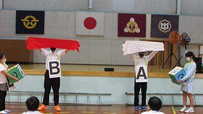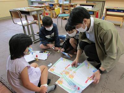 小学校3年生は、ALTと一緒にアルファベットの勉強をしていました。