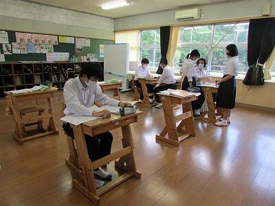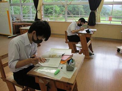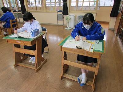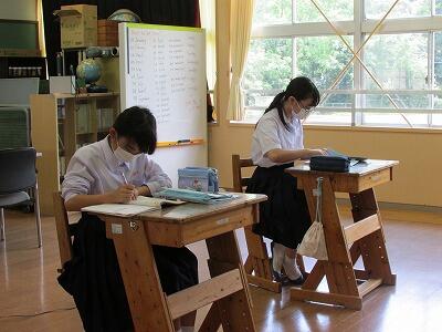 中学1年生の社会の様子です。「世界の姿」と「日本の姿」の学習内容の単元テストを行いました。二人とも目標に向かって頑張って取り組んでいました。結果が楽しみですね!