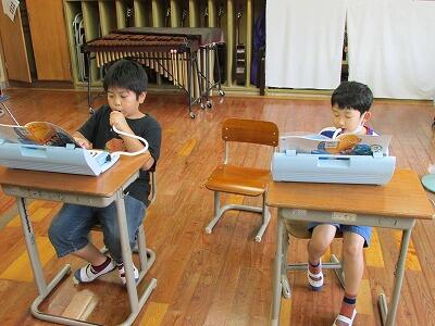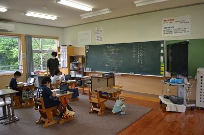 小学2・5年生は、国語で新しい漢字の学習を順調に進めています。タブレットのドリル機能を使ってきちんと覚えているか確認しました。