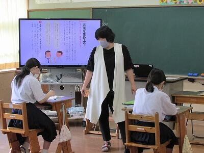小学校5・6年生は英語の授業で、ALTの先生と一緒に日付の言い方について学習しました。有名人の誕生日を英語で答えたり、自分の誕生日を英語で言ったりしました。授業の後には、学級担任の先生に誕生日を英語で尋ねていました。