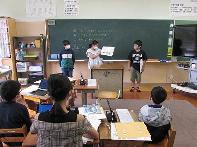 小学校5・6年生は英語の時間にALTの先生と一緒に海外との時差について考えたり、一日の生活の流れを英語で表現する練習をしました。