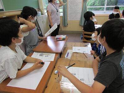 小学3年生は、算数でm(ミリ)とk(キロ)の関係について学習をしました。本日も宮崎大学の先生がお越しくださり、助言をいただきました。