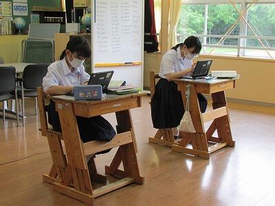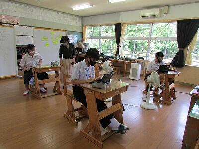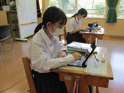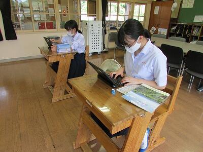 中学2年生の国語の様子です。「枕草子」について、自分が疑問に思ったことを調べてまとめる活動をしました。あと1時間調べ学習を行い、発表する予定です。