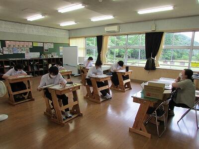 小学5年生の算数の様子です。比例の学習を終え、単元テストを行いました。決まりを見つけ、問題を解くことができるようになりました。