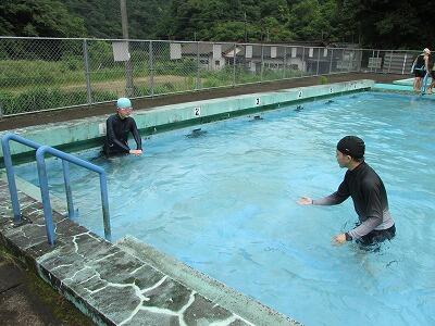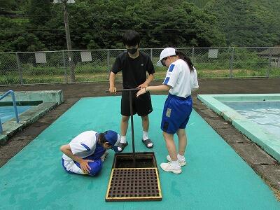 教頭先生から説明を受け、実際に水質調査を行いました。