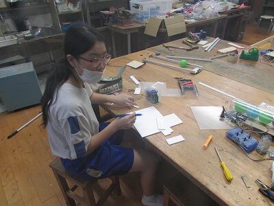 中学生の女子はロボコンに向けて、ロボット制作に取り組んでいました。