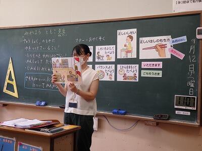 小学校1・2年生は生活科の授業で、運動会に向けて誓いの言葉の練習をしました。