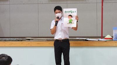 まず職員がデモンストレーションを行い、ポイントを押さえながら説明をしました。新型コロナウイルス感染症予防の観点も含めた心肺蘇生法について確認しました。