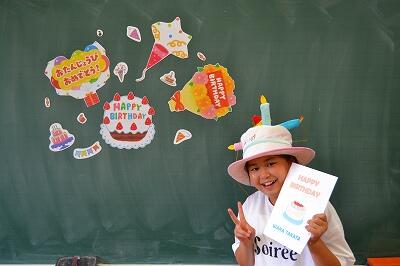 今日の給食は9・10月生まれの人たちをお祝いするバースデー給食でした。みんなで歌を歌ってお祝いしました。
