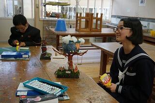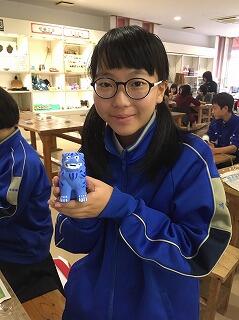 シーサーの色付け体験をしている様子です。なお、午後からは自主研修で沖縄市内を自分たちで散策したようです。