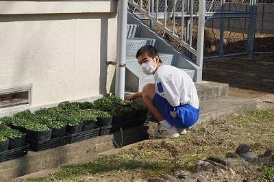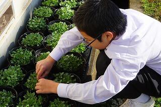 技術の授業では、卒業式に使う花の手入れをしていました。