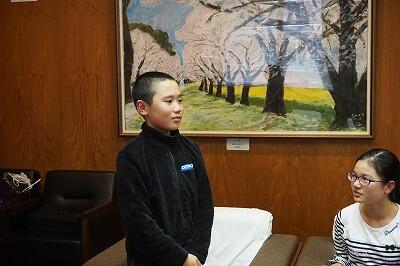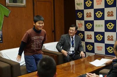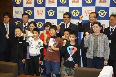 リズムダンスコンクールで全国大会に出場を決めた銀上っ子たちが、西都市長へ