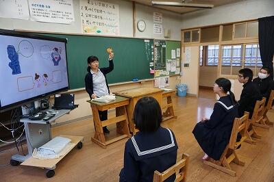 英語の授業では、会話を基にした英単語の学習をしていました。