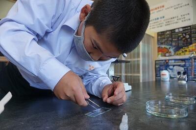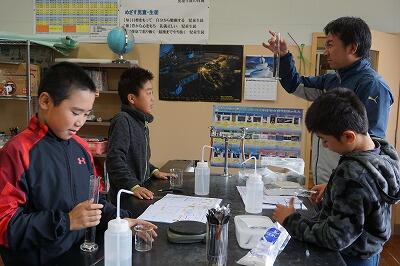 5年生は、理科の実験です。ミョウバンを水に溶かし、溶け方を調べました。