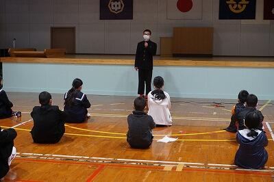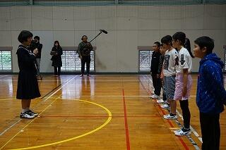 市役所では、1人1人自己紹介の後、校長先生・担任の先生と6年生のダンス長が