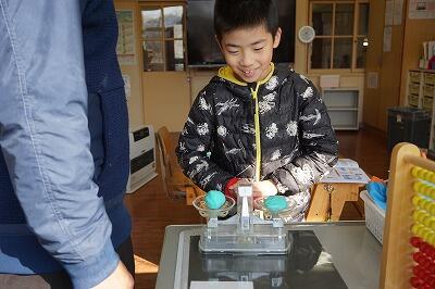 算数の授業で、目盛りのの読み方や1kgの重さを確かめていました。