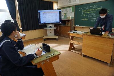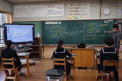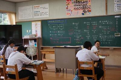 中学3年生の数学の授業の様子です。「二次関数」の学習に取り組んでいます。先生の問いかけに反応良く答える姿が見られました。