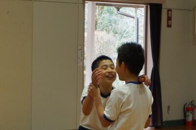 小学生は、全国リズムダンスふれあいコンクールに向けて笑顔の練習をしていたようです。