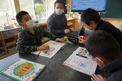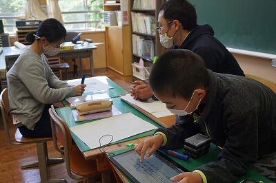 小学1年の生活科・3年生の理科の授業の様子です。1年生は、身近な植物や昆虫について図鑑を使って調べていました。3年生は、理科のテストの問題のやり直しに取り組んでいました。1・2年生の生活科で学習したことが3年生からの理科の学習につながっていくことがよくわかります。