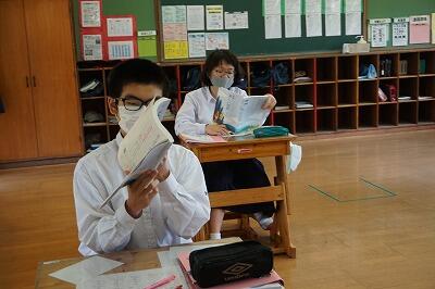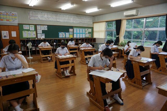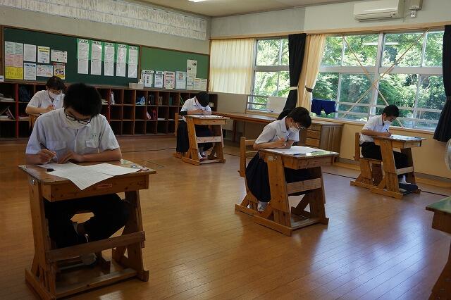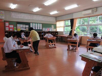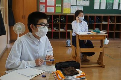 中学生は、気持ちのよい風が吹く中、定期テスト2日目を迎えました。社会・数学
