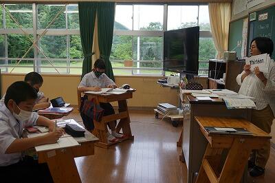2年生の英語は、2チームに分かれて質問に答えあいました。