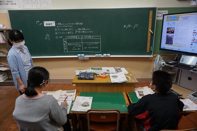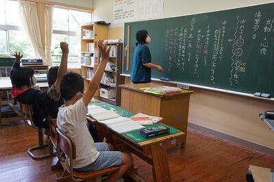 小学4年生の国語の授業です。登場人物の気持ちを考えて、黒板で確認しています。この後、しっかりとノートにまとめていきました。