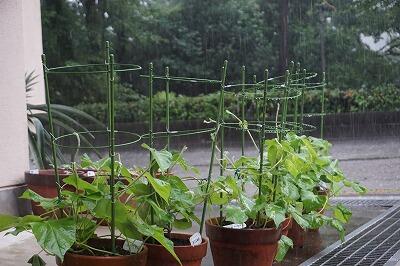 今日は、朝から雨が続いているせいか、つるが大きく伸びていました。