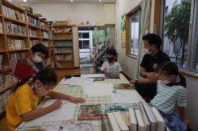 小学生は、模造紙に見学地についてのまとめや人権に関する学習をしました。