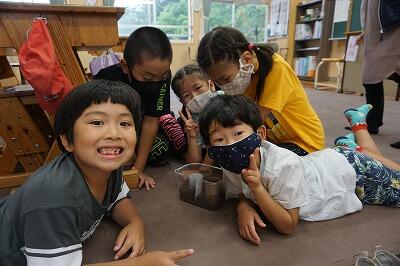 昼休みは、学級目標を作成したり、カブトムシの孵化する様子を観察したりしていました。