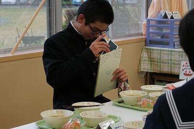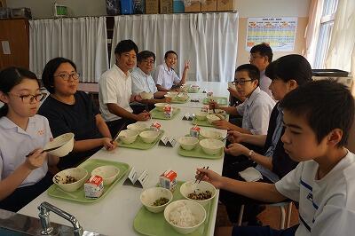 昼食です。鹿児島といえば鶏飯が有名ですね。みんなおいしそうです。