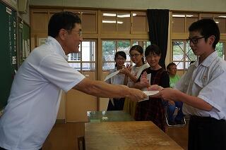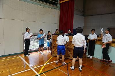 今朝は全校朝会がありました。小学5年生と中学2年生が作文発表をはきはきとした言葉で堂々と行い成長を感じさせてくれました。また、校長先生から「物事に対して、なぜ?どうして?どうすれば?など深く考えていくことが自分の成長につながります。」というお話しがありました。