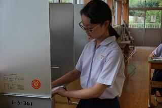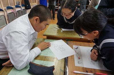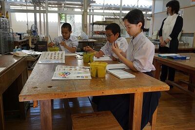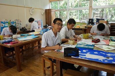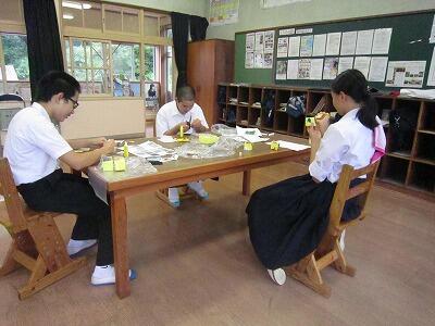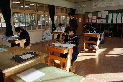 中学生は、社会と美術の様子です。一生懸命取り組んでいますね。