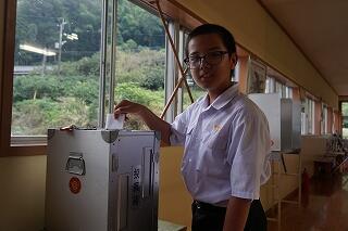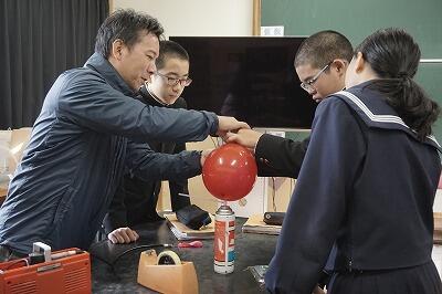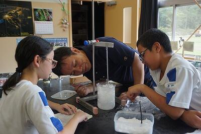 3年生の理科の授業風景です。温度計の使い方を学習しています。