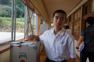 西都市街地と比べて霧がとても凄く、空が曇っているような状態でした。そして室外に出た瞬間寒かったです!教室内では暖房器具が大活躍でした。