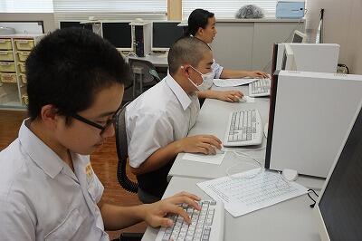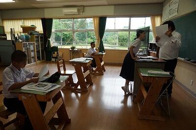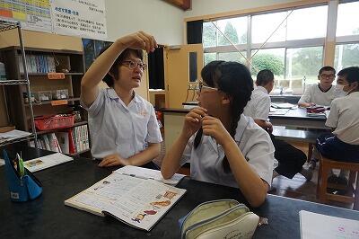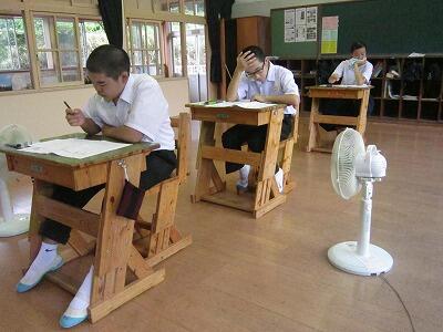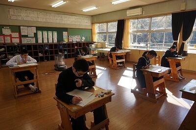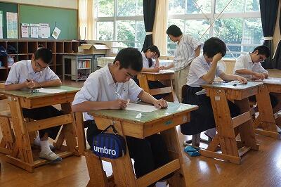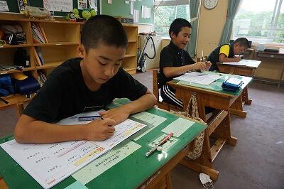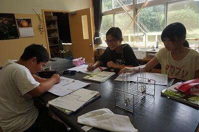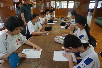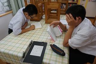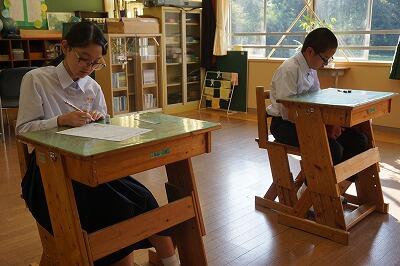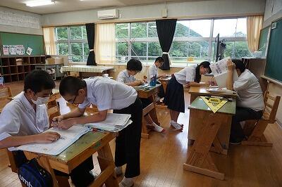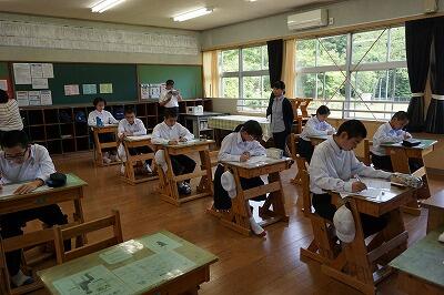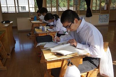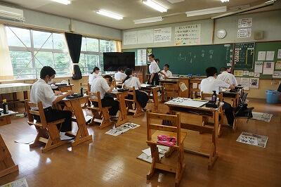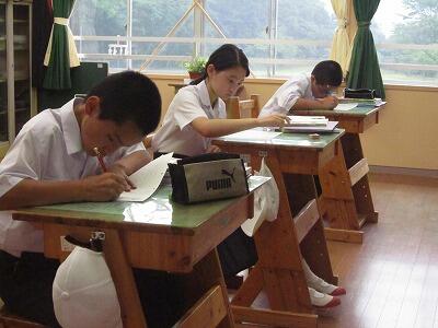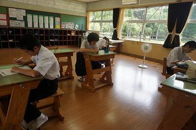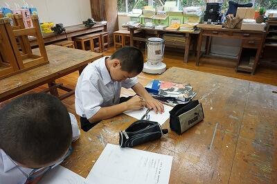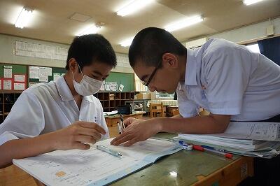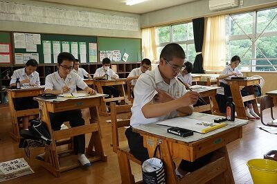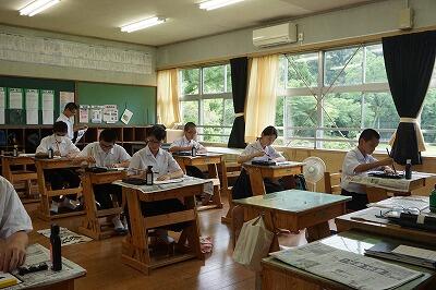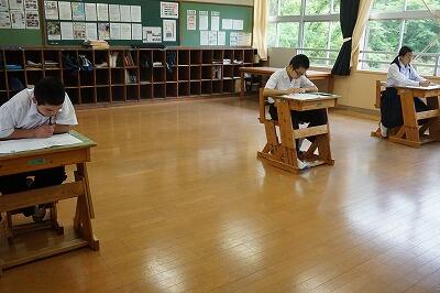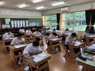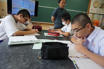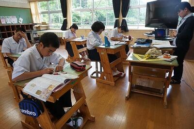中学2年生は、理科の復習問題に集中して取り組んでいました。