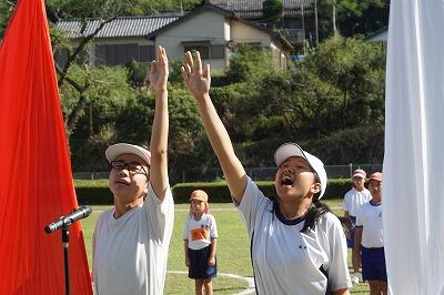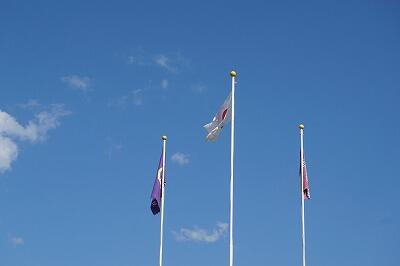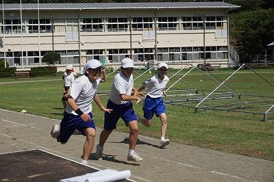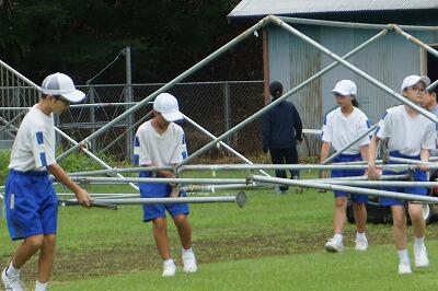 今日は朝のうちはどんより曇っていましたが,お昼前から雨になりました。雨が降り出すと中学生が校章旗を素早く片付けてくれていました。さすが中学生です。ありがとう。