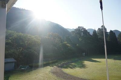中学生は保健体育で、今日から持久走の練習が始まりました。グラウンドから見える大自然の景色は美しい緑に囲まれ、晴天も相まって気持ちが一新されるようでした。