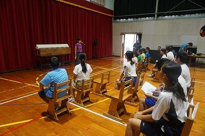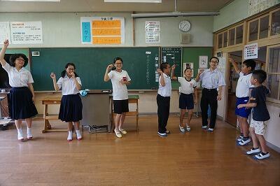 はじめは児童生徒レクレーションで緊張した雰囲気をほぐしました。はじめは緊張していた体験生たちもだんだんと慣れてきたようです。