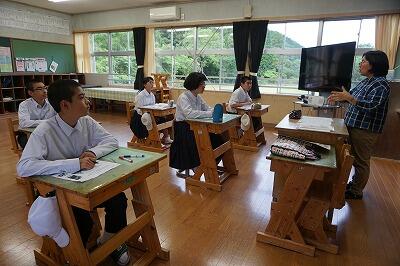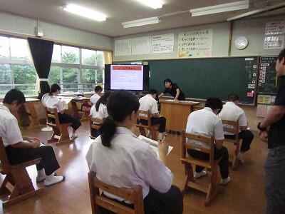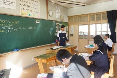 授業は、学力向上の取り組みとして、中学3年生の数学を宮大の先生に見ていただきました。
