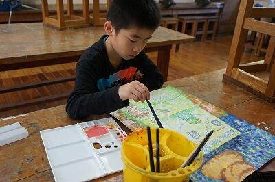 図工の時間はイメージした色を丁寧に塗って作品を仕上げていました。