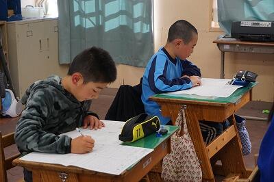今日は、雨の一日でした。小学生は、授業のなかで計算問題や