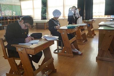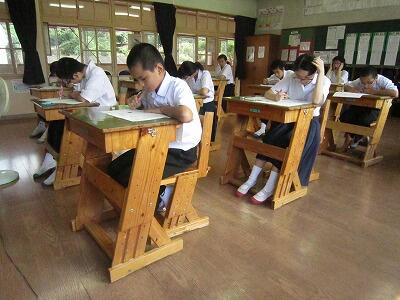 午前中、小中学生総合学力検査を受けました。時間一杯問題に取り組みました。