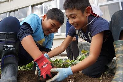 そんな絶好のチャンスに、小学生はお芋の苗植えをしました。