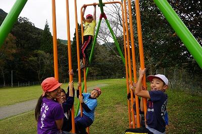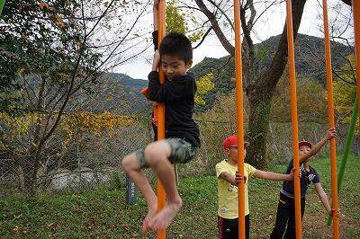 収穫した後は、グラウンドに新しく設置された遊具を使って楽しみました。