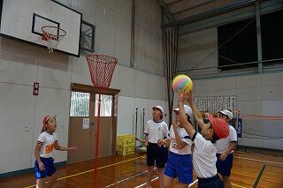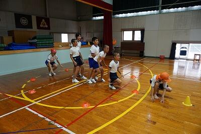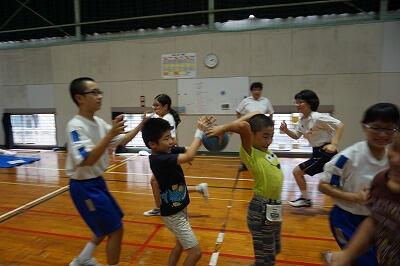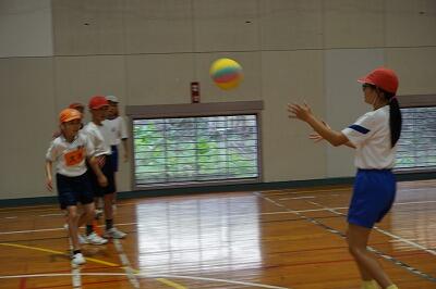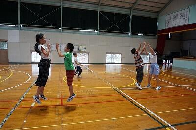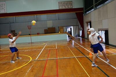 小学生は、バスケットの練習です。みんなでパスの練習をしました。