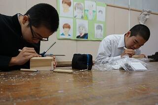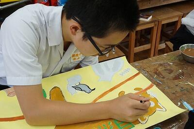 中学3年生は、美術作品作製中です。一人一人のデザインが細かく