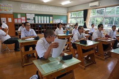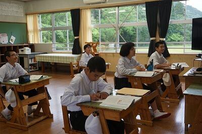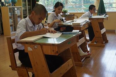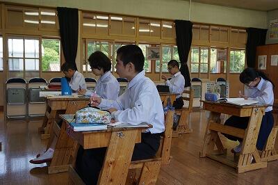 中学生も勉強を頑張っています。今日の写真は1年生が数学、2年生が国語、3年生が英語の授業を受けているところです。姿勢や表情もいいです。